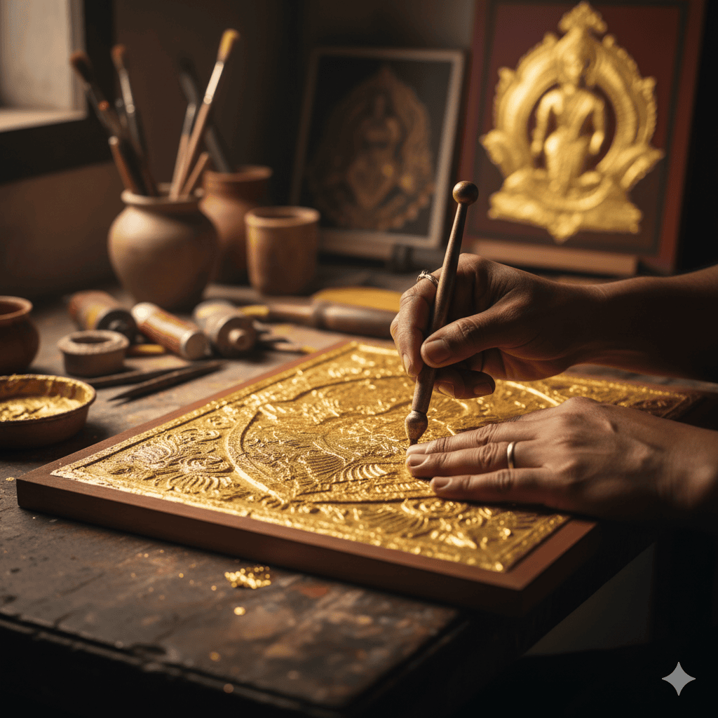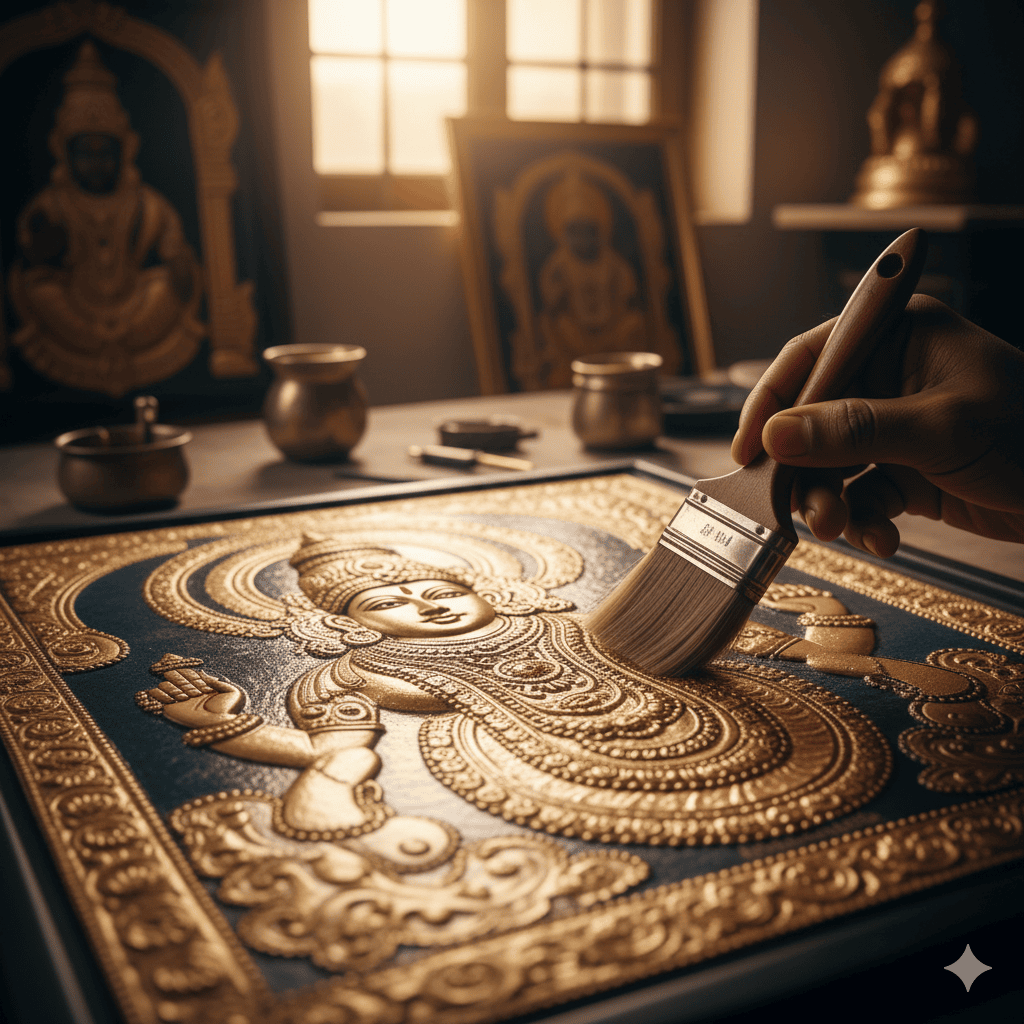 We follow rigorous time‑tested processes in Thanjavur. Every painting is 100% hand‑made and built to last across generations. We do not do mass production—we take limited orders and make each painting as a masterpiece.
