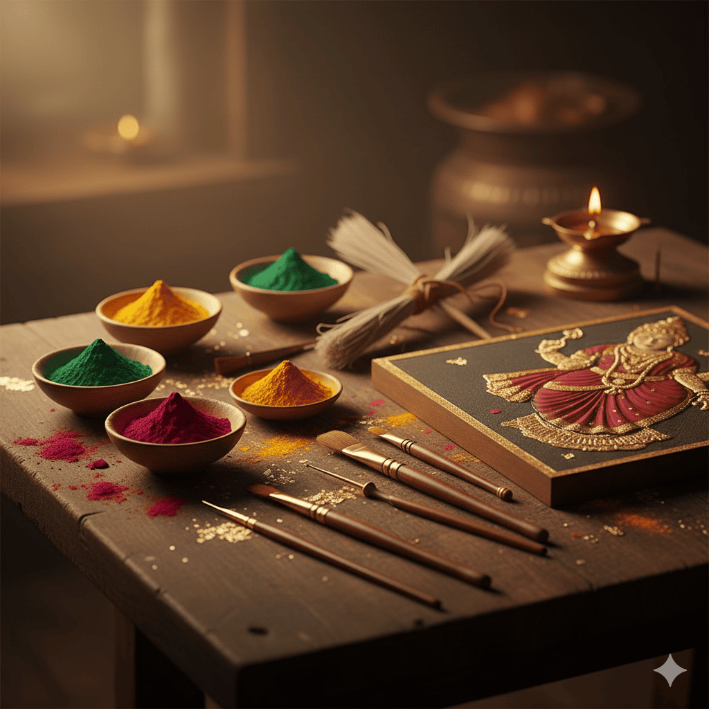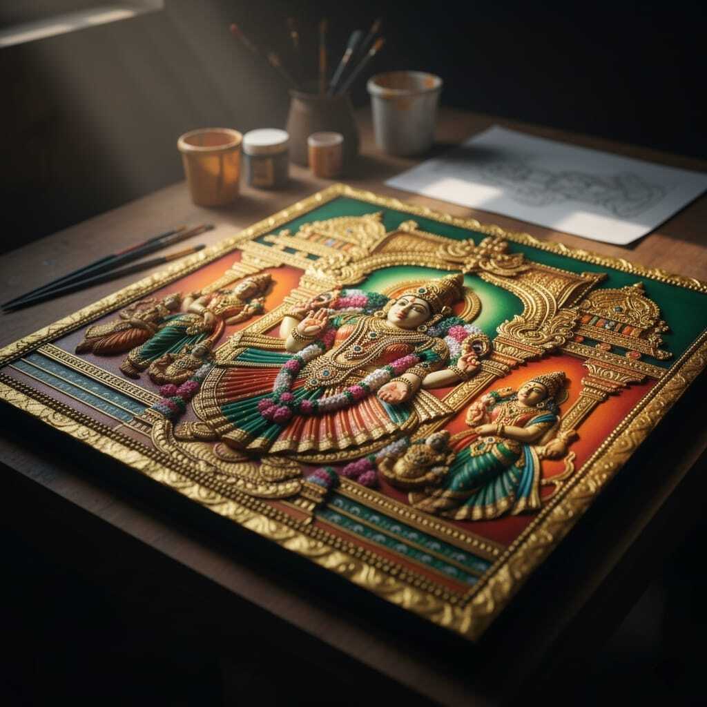 We follow rigorous time‑tested processes in Thanjavur. Every painting is 100% hand‑made and built to last across generations. We do not do mass production—we take limited orders and make each painting as a masterpiece.